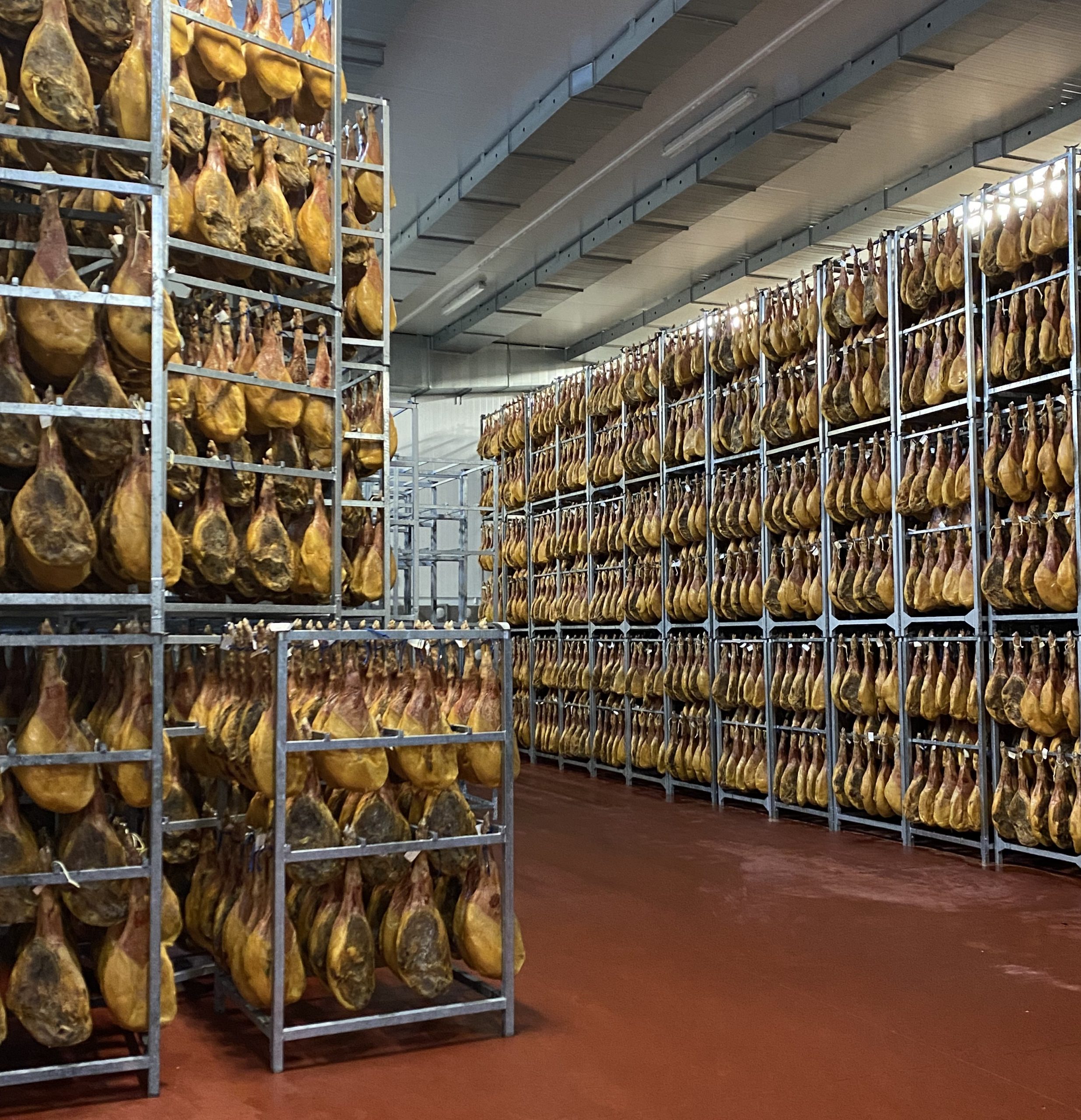 - Bodegas naturales de jamones con control de temperatura y humedad.